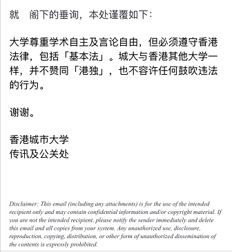 关于大学校园出现“港独”的海报及标语,行政长官林郑月娥强调,这不是言论自由问题,而是是否尊重“一国两制”、爱护香港在“一国两制”下保障自由权利的宪制问题,并不存在限制学生言论自由,干预大学学术自主,毋须混淆视听。林郑月娥日前就曾强烈谴责,“港独”不符合“一国两制”、基本法以及香港社会的整体和长远利益。对于大学校园内持续出现此等违背国家主权、领土完整和发展利益的言论,我亦予以谴责?!?/p>