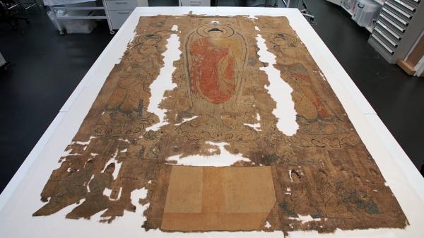 大英博物馆“斯坦因密室”内藏有一件敦煌藏经洞出土的巨幅刺绣《释迦牟尼灵鹫山说法图》(国内专家称应为《凉州瑞像图》)。近期大英博物馆正在重新评估它目前的状况,做一些必要的修复,并将修复过程制作成视频“修复‘灵鹫山’”(Conserving Vulture Peak),每周播出。