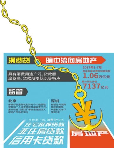 北京银监局和央行营管部下发通知,辖内个别银行业金融机构发放的个人消费贷款和个人经营性贷款存在违规流入房地产市场用于购房的情况,这类行为不符合国家房地产调控政策要求,要求辖内银行业金融机构按季度就本机构个人非住房类信贷资金用途开展自查。