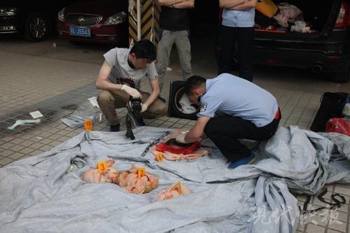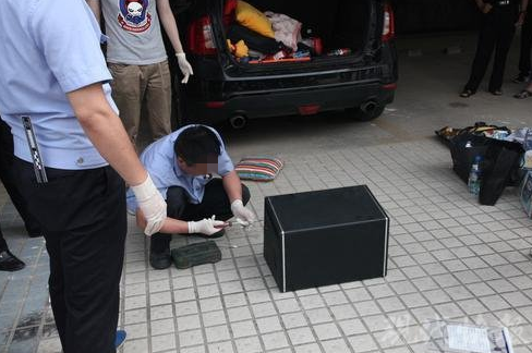 "最里面是红色塑料袋包了两层,然后外面是用胶带再包好了,再外面再用两层黑色塑料袋包好了。我们技术部门对塑料袋和包装纸都进行了勘验,发现他们很专业,上面没有任何指纹,应该是戴手套作案。我们把8公斤的毒品倒在脸盆里面,一个这么大的脸盆,堆满了还多出来了。"