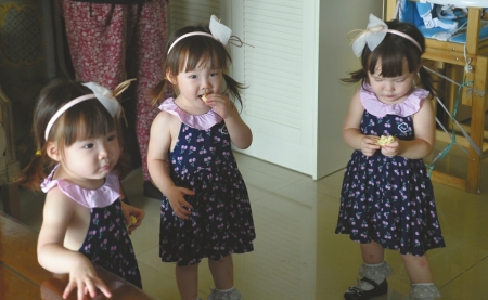 三胞胎姐妹花,父母要靠她们的眼神才能区别。