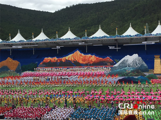 开幕式上,大型文艺表演《迪庆礼赞》通过《记忆》《足?!贰都以啊贰抖贰端谈琛贰睹蜗搿妨銎?,以歌舞、朗诵等方式,完美呈现了迪庆州建州60年来的历史风貌和时代精神。