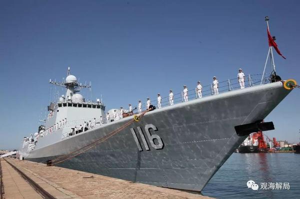 石家庄舰系051C型导弹驱逐舰,舷号116,2007年3月服役于北海舰队,装备了性能先进的反舰、防空、反潜、电子战等武器系统,具备优良的区域防空能力。