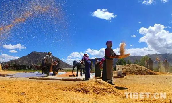青藏高原上,蓝天白云下,响起一首秋收的金色交响曲。