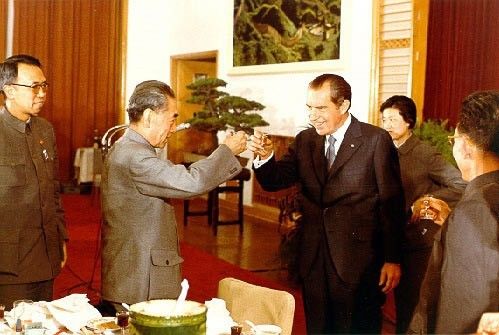 为了确保冷战主战场——欧洲的实力优势,从20世纪60年代末开始,美国计划从东亚地区后撤。为了平稳、体面地撤退,美国迫切需要改善与这一地区主要对手——中国的关系。而对中国来说,由于60年代初的中苏论战以及60年代末的中苏边境冲突,受到了来自北方沉重的军事压力。这些因素,使得中美两国相互成为对方尚未开发的最重要的外部战略资源。1972年两国关系实现了历史性突破。这引发了冷战时期国际关系一次最重大的重组。