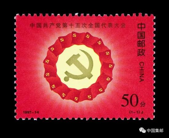 ▲中国共产党第十五次全国代表大会纪念邮票