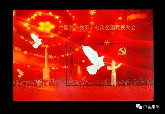 ▲中国共产党第十七次全国代表大会纪念邮票(小型张)
