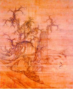 从画面的气氛和构成来看,解释成孟浩然似乎合理一点,稀疏的古树,零落的林木,苍凉的古碑,凄清的气氛,更符合堕泪这种姿势。两人观碑,冷清萧索,也更符合孟浩然山水田园诗人的身份。