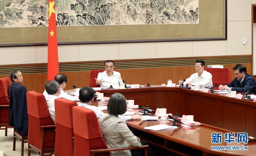 9月27日,中共中央政治局常委、国务院总理李克强在北京主持召开座谈会,研究进一步深化营改增试点、完善相关财税政策等工作。中共中央政治局常委、国务院副总理张高丽出席。新华社记者 马占成 摄