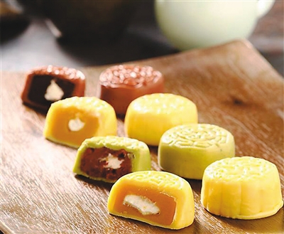 如果说双黄莲蓉代表了传统广式糕点对食客的影响,那么近年兴起的“冰皮月饼”和“流心奶黄月饼”,则包裹着粤式美食创新和融合的理念。每年自阳历7、8月起,稍有名气的酒楼、饼店便开始一年一度的月饼订购期,并尝试在展会中推广,吸引食客。从传统的莲蓉、五仁,到冰凉爽口的冰皮月饼,从港式的奶茶、腊肠,到法国的黑松露、鹅肝,口味包罗万有,不一而足。