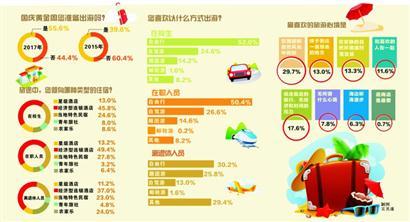 本次调查采用在线调查方式,样本总数1500份??悸堑降毕峦獬雎眯械钠毡樾裕龆匝窘凶刺肿?,分别为:在校学生、企事业单位员工(在职人员)、离退休人员(含非在职)三组,每组样本500人。本次调查还参考了解放日报社会调查中心2015年的相关调查数据。总体调查数据显示:在今年国庆长假里,打算出游者超半数,为55.6%。该数据较本报两年前的调查高出16个百分点。