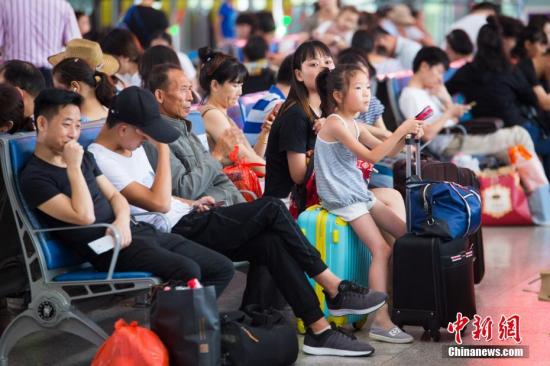 10月7日,“十一”黄金周长假进入尾声,外出游玩或探亲的旅客开始陆续返程,福州火车站迎来国庆节返程高峰。 中新社记者 李南轩 摄
