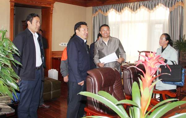扎塔陪同日喀则市委常委、统战部部长巴桑深入市工商联直属会员企业调研。资料图片