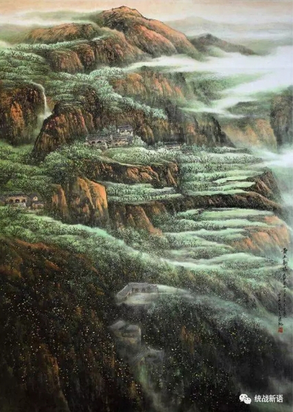 张月芳:今年7月底我满怀喜悦地加入了“海上新力量喜迎十九大”上海自由艺术家主题艺术展的创作行列。随着“上海市新的社会阶层人士联谊会”的成立,作为一位长期在海外生活的游子,感受到了祖国的召唤,“家”的归属感油然而生。能用手中的画笔缅怀革命先烈,铭记这来之不易的幸福生活,是作为一位自由画家义不容辞的职责。作品《风雪征程》反映了红军爬雪山过草地,英勇抗击敌人,为新中国的诞生抛头颅洒热血壮观场景;《高原金秋》侧重南泥湾革命,通过双手,将“荆棘遍野,荒无人烟”之地变为“处处是庄稼,遍地是牛羊”的陕北好江南;《黄土新绿》描写了习主席当年插队地方状貌,如今的陕北高原,退耕还林,一片春意;《山色空濛》山间云雾缥缈,神清气爽,冉冉升起的轻盈曼妙的薄雾,柔柔地拂拭着山坳,一片祥和。纵使遥山隔水,骨子里的千年儿女情怀固然不变。纵使千言万语,热情与责任,通过双手,化为作品,向十九大献礼!