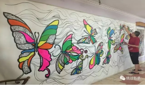 朱者赤:“蝶舞飞扬喜迎十九大”,看似简单的题目但对于我们艺术创作者来说却是一个历史性与时代性的大课题。由心而发的意识加之对当下感受到祖国的繁荣昌盛富强,意取之十九只大小不同造型异样的美丽蝴蝶象征着十九大的胜利召开,以中间的最大蝴蝶为整个画面(十九大)的中心,左右各有九只蝴蝶奔向中心的最美最大的蝴蝶,背景采用唯美浪漫轻松又似大型交响乐章乐谱式的夸张表现主义线条,寓意着奏响中华民族史诗性的展现。因为时间非常有限,我昏天黑地在工作室画十三天甚至把冰箱里的食物都吃光了才出门买菜。也由于工作室的墙面有限,绘制这幅十一米多的作品是先画一半后再画一半中间连接后而完成的。创作过程中所有的艰辛付出都随着作品完成的瞬间而化解了,十三天十一米,创造了我在艺术创作过程中的奇迹,也是我非常满意的尽心得意之作。作为一个自由职业艺术家,为我的祖国在这十九大召开的历史性时代而抒发一笔豪迈而激情的视觉表达,这是对我艺术创作人生之路最有价值的心境创作表达的体现。路漫漫其修远兮,我们怀记历史努力进取创新发展,祝福我的祖国更加繁荣昌盛,一带一路,蝶舞飞扬,早日实现我们伟大的中国梦!