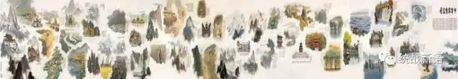 吕吉人:我为此次艺术展提供《中华锦绣全图》。该幅作品全长34米(寓意34个省级行政区)、高2米的巨型长卷,共有56个著名景点(寓意56个民族),含当时已批准了的28个联合国自然、文化遗产,以新工笔重彩、中西融合的独特手法创作完成。从构思、釆风、收集资料、小稿、彩稿到正稿、装裱,历时四年多。其间不慎摔伤了右脚,虽近一年才全愈,却从未影响创作激情,带伤坚持作画。此画由著名画家刘国松题款、著名学者何满子题签、著名画家谢春彦长跋。曾在上海档案馆外滩新馆展出,陈香梅女士为画展、画册题了字,并特意在开幕式前,先来参观。此作品特邀参展在苏州召开的第28届世界遗产大会。有很多人称赞这是最好最形象的爱国主义教课书!但是我感觉这是一个旅美三十多年的老画家,由心、用心表达其浓浓的乡情,歌颂伟大祖国的美好!