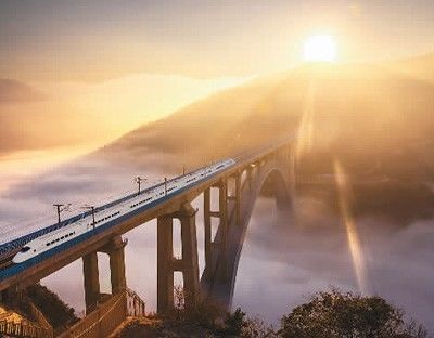 ▲资料图片:2016年12月28日,一列动车组正穿越南盘江特大桥。