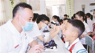 10月10日至11日,民进福建省漳州市委会联合漳州卫生职业学院附属口腔医院在漳州市通北中心小学开展“喜迎十九大——关注青少年口腔健康”公益活动,为通北中心小学的同学们进行免费口腔健康检查和口腔知识宣教,并为小朋友们和老师带去了精美水杯及口腔健康知识手册。