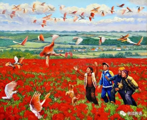 党的十八大以来,环境?;こ晌艺铰浴W魑挛鞫烙械谋粑6镏禧q,得到了前所未有的呵护,已经由1981年发现的7只变成了现在的2千多只。晏子的布面油画《朱鹮飞回了》反映了陕西洋县?;?/span>朱鹮的成功范例。每当春暖花开时,孩子们最高兴的事不是放风筝,而是喜迎朱鹮,这表现了朱鹮?;ひ馐兑言谏挛魅诵闹性?。同时,该作品蕴含另一层含义,那就是党的十八大以来,广大自由职业艺术家的创作热情被空前激发,优秀作品大量涌现,已经成为当代中国艺术百花园中的一道靓丽风景。(心吧)