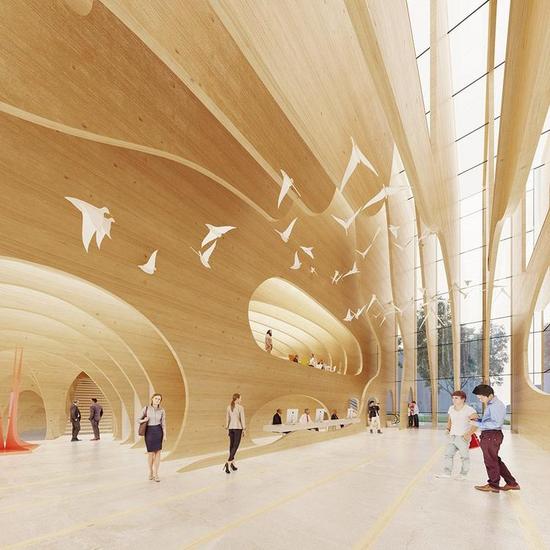 位于芬兰西南部的湖港城市坦佩雷,打算新建一座艺术博物馆。坦佩雷是全国的铁路枢纽和重要的工业区之一,该地的木材加工业非常发达。来自罗马、上海的 3GATTI 建筑事务所因地制宜,提出了一个很特别的木建筑方案。