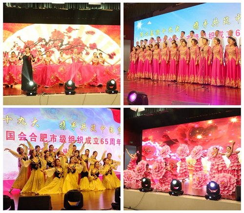 随后,喜迎十九大文艺汇演热闹开演,合唱、舞蹈、快板、庐剧、相声等形式多样,内容丰富,全部由会员们自编自导,充分表达了全市民建会员对中共十九大的热烈期盼,对民建合肥市级组织成立65周年的衷心热爱之情,演出在一首高亢激昂的《我和我的祖国》中划上一个圆满句号。