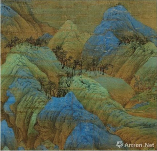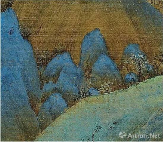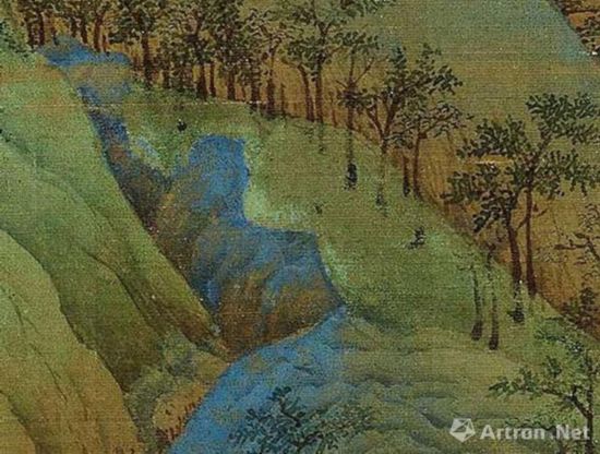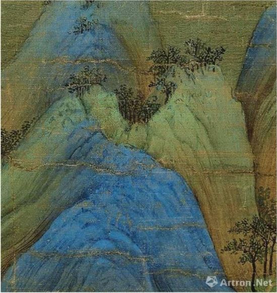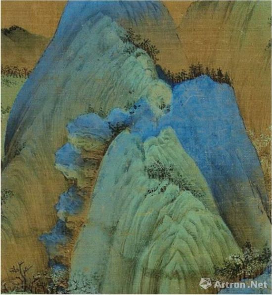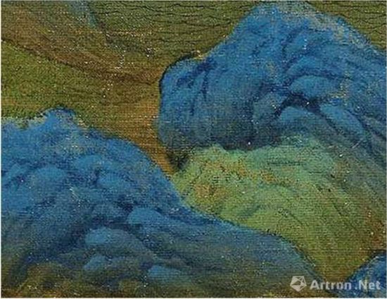 《千里江山图》用浓重石青涂染的山间石块