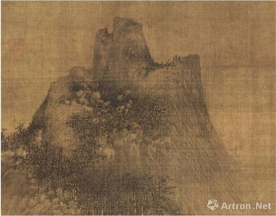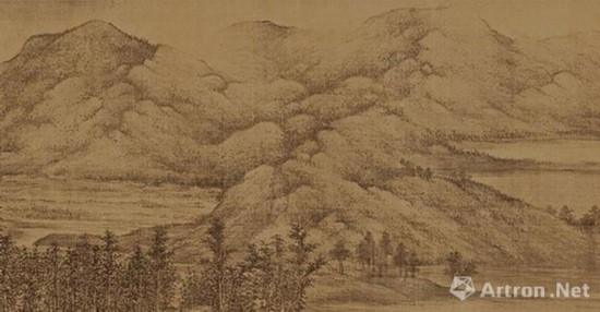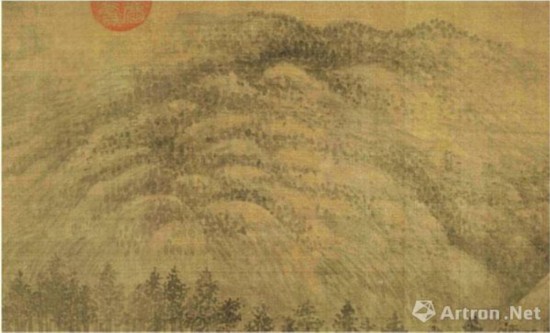 巨然《层岩丛树图》将轮廓线皴染到体面之中