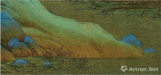 赵伯驹《江山秋色图》对山石的统染