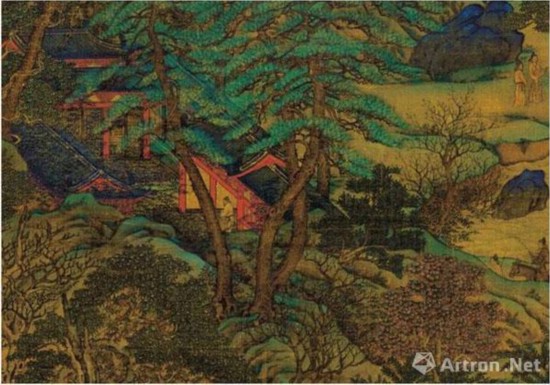 这与明清时期画坛上对于这一问题的认识很不一样?!肚Ю锝酵肌非炕时硐钟肫渌凳且恢旨挤ㄉ系钠?,不如说是一种对于色彩的价值认同,这种色彩认同体现了唐宋时期宫廷绘画的审美旨趣,从“二李”到“二赵”这些宫廷贵族的山水都是极力渲染色彩的。