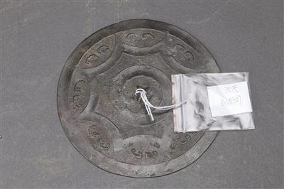 过去的铜镜,在制造过程中,锡含量较高,时间一长,容易出现脆裂,在修复铜镜中,借鉴了瓷器修复着色的方法,对铜镜进行做旧,还原铜镜应有的色彩。