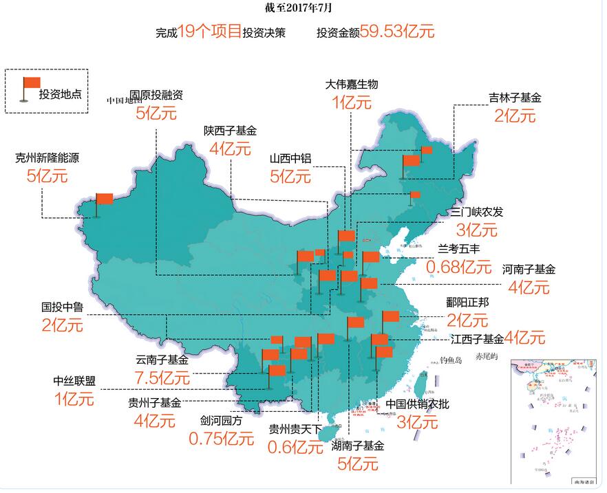 数据显示,截至2017年7月,基金已完成19个项目投资决策,投放资金59.53亿元。