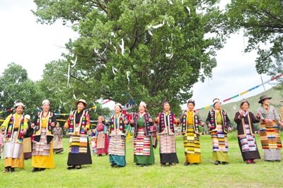 琼结县拉玉乡强吉村的村民跳起“果谐”庆祝丰收。记者李洲次旺摄