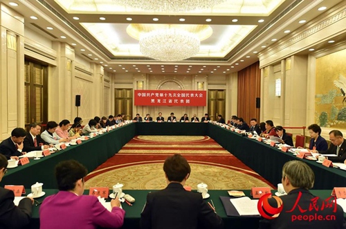 党的十九大黑龙江省代表团讨论现场。人民网记者 翁奇羽 摄