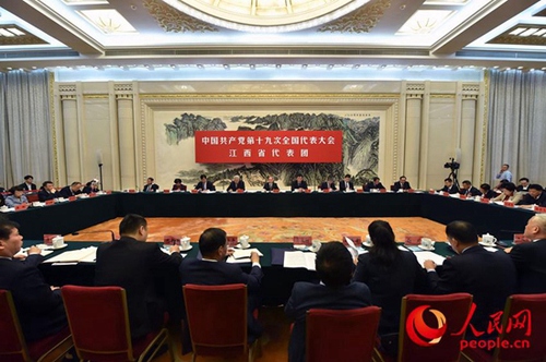 党的十九大江西省代表团讨论现场。人民网记者 翁奇羽 摄