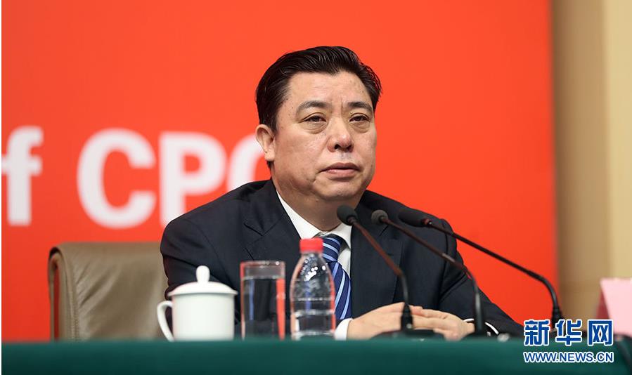 10月21日,十九大新闻中心举办记者招待会,邀请中共中央统战部常务副部长张裔炯、副部长冉万祥,中共中央对外联络部副部长郭业洲介绍党的统一战线工作和党的对外交往情况,并回答记者提问。图为中共中央统战部副部长冉万祥。新华网 郝广鹏 摄 图片来源:新华网