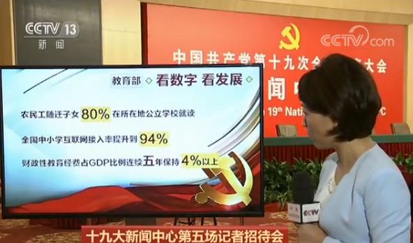 教育部:80%以上的孩子在流入地公办学校就学,还可以在流入地参加高考。2017年,农民工子女在当地参加高考,报名15万人,这是什么概念呢,是五年前的36.5倍。全国中小学互联网接入率提升到94%;财政性教育经费占GDP比例连续五年保持4%以上。到2020年,我们学前教育(即幼儿园)毛入园率要达到85%,到2020年,高中阶段毛入学率达到90%以上,高等教育毛入学率达到50%,基本普及高等教育。