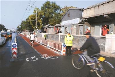 双排非机动车道亮相北京 护栏内设内嵌式停车区