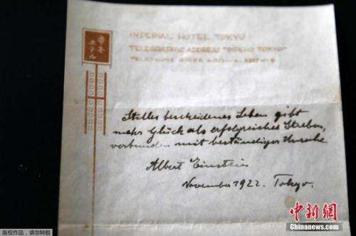 原标题:爱因斯坦手写便条被拍卖 两份“心灵鸡汤”超千万元成交