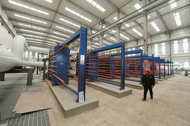 在三角线换热站内,记者看到,控制室里有压力表和温度表,显示着当前的温度和压力,值班人员不时查看设备运行情况。一台由波纹形状金属片叠装而成的机器很显眼,张向阳说,这就是板式换热器,通过板片进行热量交换,具有结构紧凑轻巧、占地面积小、换热效率高等特性。
