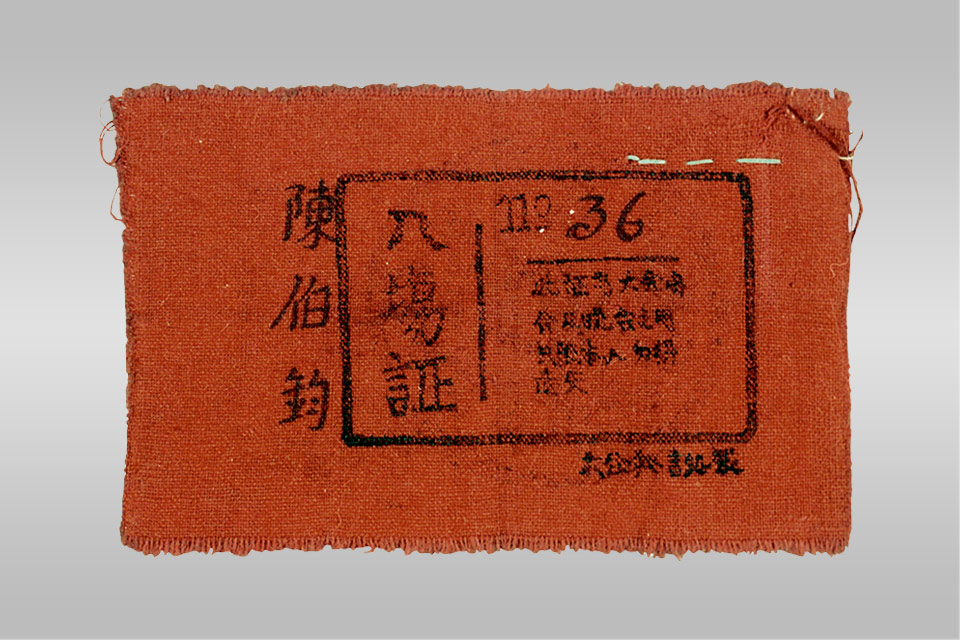 这张入场证是七大大会秘书处发给陈伯钧的。陈伯钧(1910~1974)1927年加入中国共产党,抗战初期任八路军一二○师三五九旅旅长,七大时任陕甘宁联防军副参谋长。