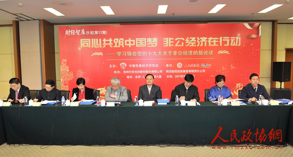 人民政协网北京10月29日电 深入学习贯彻党的十九大精神已经成为社会各界的首要政治任务。10月29日,由中国民营经济研究会主办,人民政协报财经周刊承办,主题为“同心共筑中国梦 非公经济在行动——学习领会党的十九大关于非公经济的新论述”的第17期财经智库沙龙在京举办。多位全国政协委员指出,随着中国特色社会主义进入新时代,新的历史方位既为民营经济带来空前发展机遇,也带来新的责任使命。今后,民营企业应借助全社会呼唤企业家精神的东风,以新姿态、新作为,为增强中国经济活力和后劲、实现“两个一百年”奋斗目标做出新贡献。