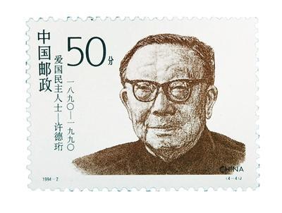 1994年2月25日,中国邮政发行了《爱国民主人士》(第二组)纪念邮票,全套4枚,其中第4枚为著名教育家、社会活动家,九三学社创始人许德珩,他生于1890年,于1990年逝世,享年100岁。