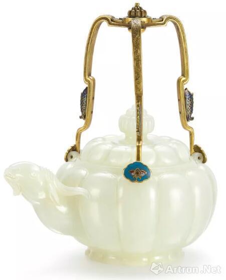 此壶乃宫廷名器,拍出天价不在意外,而拍品介绍中,徐琳的一篇《一片冰心在玉壶 ——白玉羊首瓜棱式铜镶珐琅提梁壶赏析》,更是提供了一份玉壶小史,在此节选,供藏友参考。