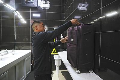 10月31日,西站北广场公共卫生间,新升级的卫生间增设了行李暂时存放台。新京报记者 侯少卿 摄