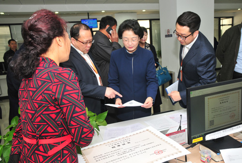 25日上午,调研组一行赴辽宁省政务服务中心实地考察,认真听取省政务服务中心的工作介绍,与各驻厅单位积极互动交流,详细询问辽宁省“放管服”及网上受理审批工作情况。温雪琼对加强各部门之间信息网络贯通,推广审批单位“窗口授权”及干部管理培养等问题提出意见建议。