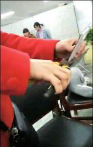 11月3日,华商报记者在名为“汉中”的微信公众号看到这段视频,拍摄地似乎为学校办公室,一名身穿红色外套的女子边说话边用钳子夹一部手机,由于非常用劲,不时发出“咔咔”的声音,手机屏幕也已出现裂痕。视频中还出现了一个男子的声音:“今天上课的时候,她玩也就罢了,还叫旁边女生拿去玩,这事情弄得真是叫我……”在视频中可以清晰看到,两名女生背靠墙站在远处,看着女子用钳子夹手机。