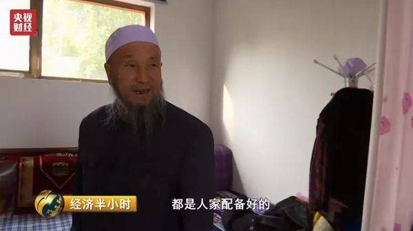 马占福:电视、椅子、柜子、床,包括这个衣架都是人家配好的。卫生间热水器也是人家配好的。比在老家住着要强,也不用生火,地暖10月8号天气凉就送上来了。