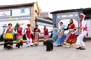 绕村一圈,你会发现这里无处不体现多民族特色:那造型奇特的凉亭,有着藏式的喇嘛塔顶、汉式的重檐、傣式的栏杆,俨然一个建筑版“全家?!?;村内的本主庙,除了供奉白族的本主,还有彝族的牛头,外面还飘着藏族的经幡;民族文化长廊里,傣族的孔雀、藏族的吉祥宝瓶、彝族的火把等文化符号随处可见。