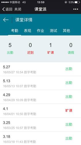 姜同学也向小新展示了她曾经的考勤记录:旷课一次
