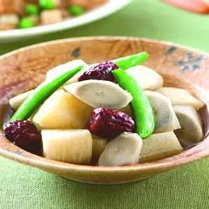 做此汤时,先准备好牛蒡500克,海带结200克,胡萝 卜1条,排骨500克,盐1小匙。然后将牛蒡和胡萝卜削皮、冲净、切成滚刀块,将牛蒡块 泡水。海带结冲净、沥干。排骨放入沸水中氽烫、捞起、冲净。将所有材料盛锅,加水至盖过材料,以大火煮开,转小火慢炖30分钟,加盐调味即成。
